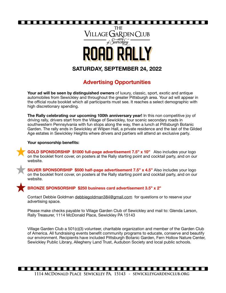 Advertise in The Road Rally Booklet